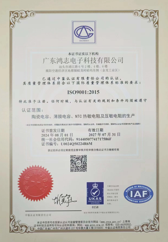 廣東鴻志質(zhì)量體系證書