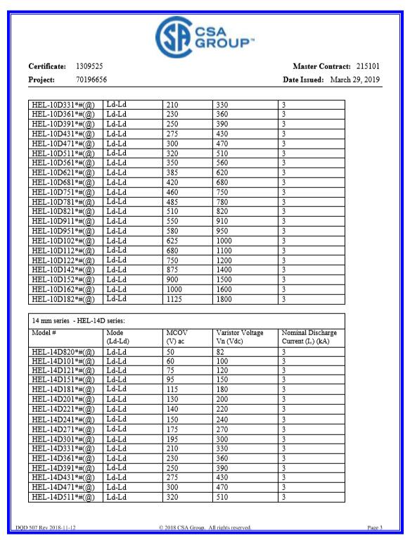 壓敏CQC-14D系列證書