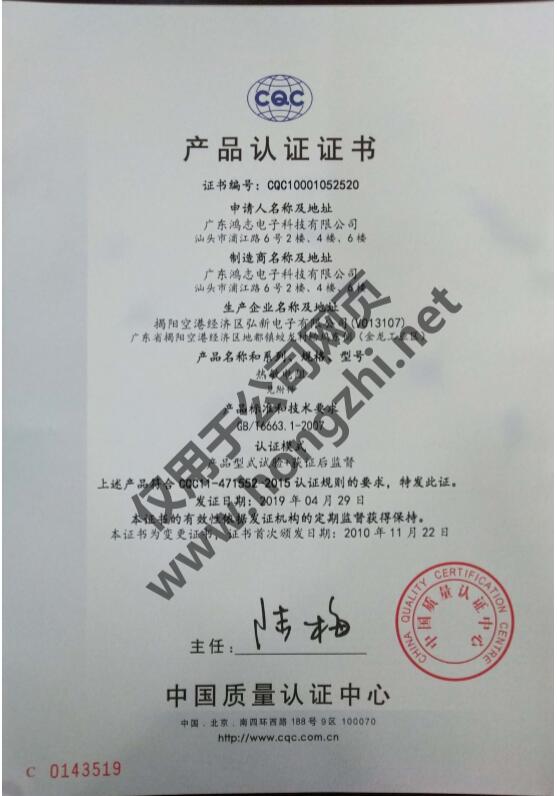 NTC熱敏CQC認(rèn)證