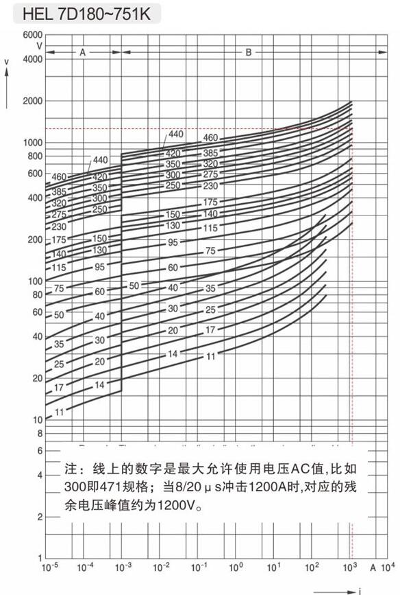 橫軸是沖擊時間即浪涌波型寬度,縱軸是沖擊電流峰值,